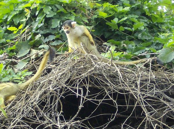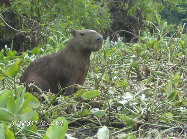 Again, I have a very distinct memory that I didn’t mention in my journal. I remember on the bus ride to Rurrenabaque at one point we were in an area that was very lush and overgrown. It was dark and there was lightning. I recall feeling like a T-Rex was going to come crashing through at any moment. It felt like I was in Jurassic Park and I hadn’t even seen any wildlife yet. This was another long bus ride and we rolled into Rurre early in the morning of July 15th. Once in town, there was a little time to kill before boarding the truck that would take us on a 4 hour ride to the park where the pampas tour would be. It was about half way through that ride when it came to my attention I needed to pay money to get into the park. I was beside myself thinking fucking hell, can’t I just see one fucking thing!? As mentioned I did have a nice French woman loan me the money so I could get into the park. She was taking the tour with her boyfriend and they were going to be on the same tour as I. At the end of the truck ride we met up with our designated tour guides. Now, I should have been more pissed about this detail I’m about to mention but I was thankful to be going at this point. I paid for an English speaking guide through the travel agency and well, he happened to be “sick” so I got a Spanish speaking guide instead. Thankfully, the French couple were able to interpret for me as they understood Spanish. We boarded a supersized canoe with a motor and were on our way. Right from the get go wildlife was everywhere. Birds, Capybaras, Monkeys, Alligators, and Caimans. It was insane how many alligators/caimans there were. There would be a bunch of them laying on the land and a bunch swimming on the top of the water. The French couple interpreted to me the tour guide stating for each one we see the same amount are underwater. I was mesmerized seeing all this wildlife. It was what I truly had been wanting this whole trip. The chance to be out in some nature. It was a strong start to the tour and the momentum continued.